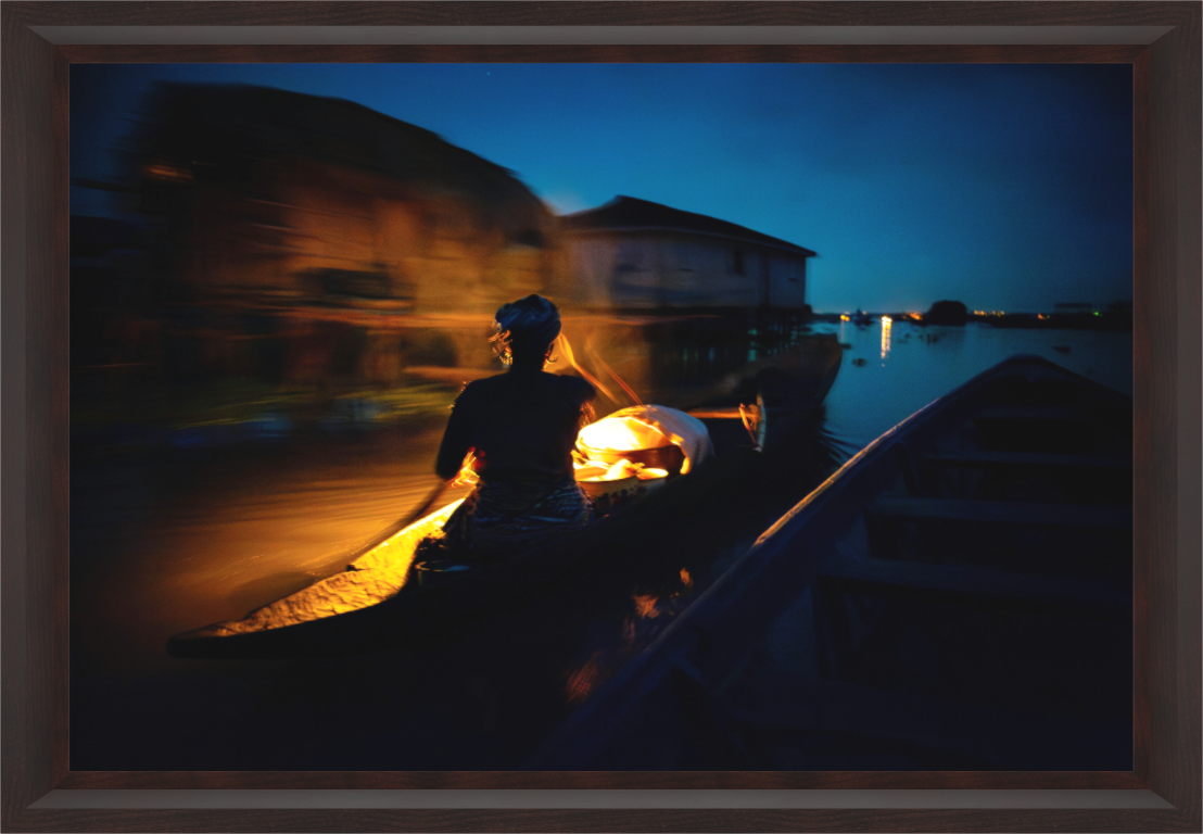 5 heure, le matin, Ganvié, village lacustre du sud du Bénin s'éveille. Cette femme part vendre de la nourriture aux pêcheurs qui partiront sur le lac toute la journée.
